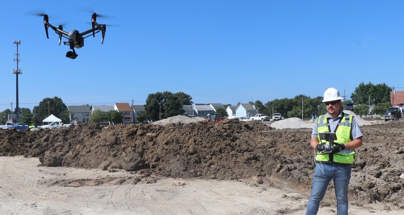 During site excavation on the East End transformation project at Washington University in St. Louis, he oversaw daily drone flights to document work progress on the fast-track, $280 million project. Using a tablet, he directed the drone’s 13-minute journey along a programmed flight path as it captured hundreds of high-resolution aerial images and data so the construction team could assess progress and modify the schedule when necessary.
